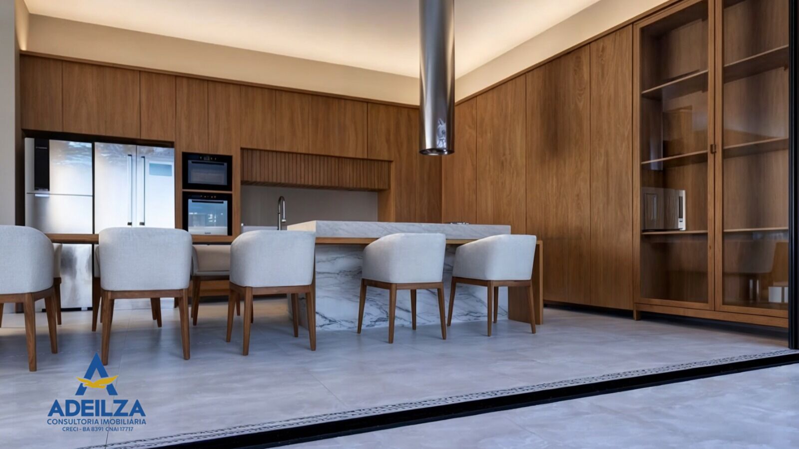 - Salas integradas com cozinha, varanda e pé-direito estendido
